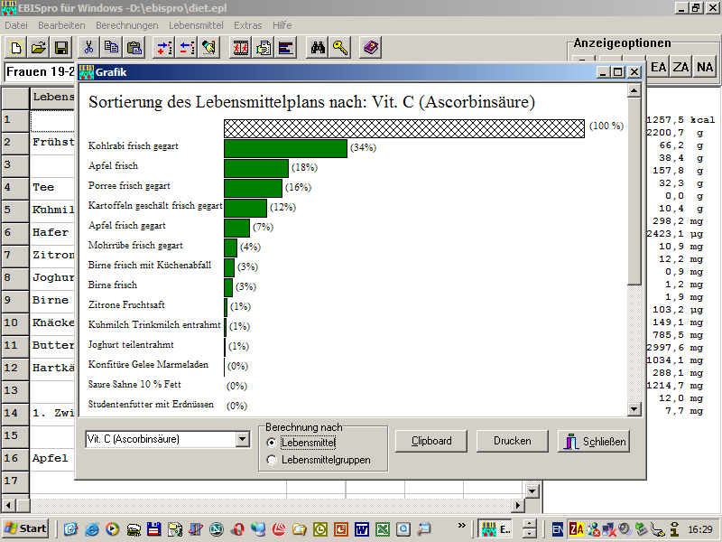 Für jeden Nährstoff kann eine Sortierung der Lebensmittel bzw.