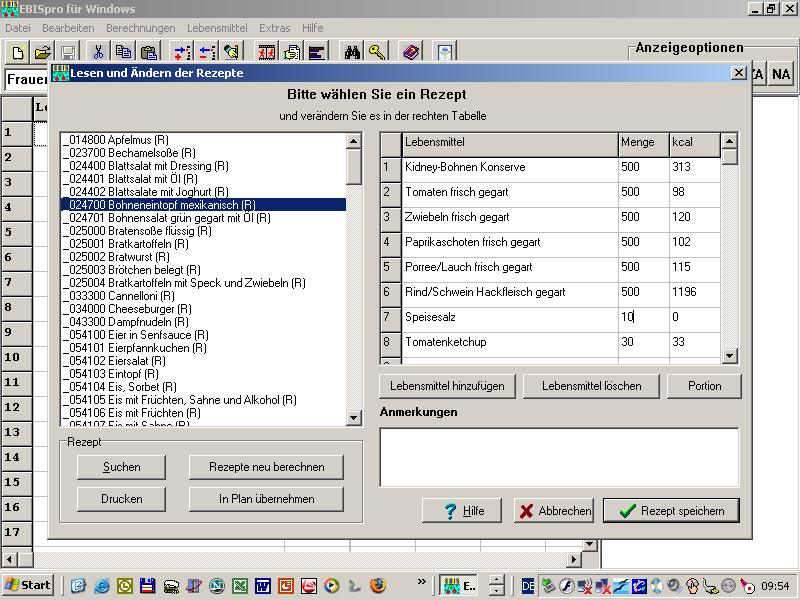 jetzt die Modifikation des Rezeptes in einem eigenen Arbeitsblatt