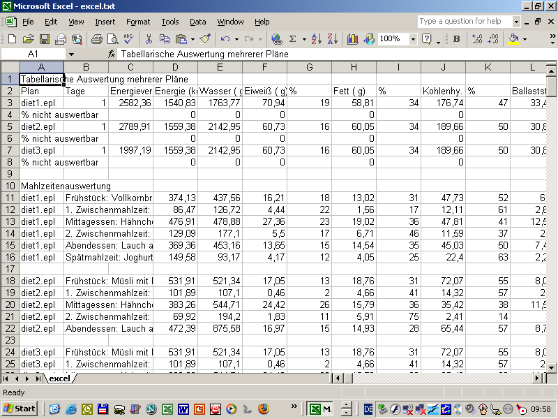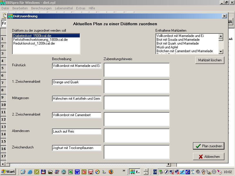 verwendet. Mehrere Pläne können jetzt auch nach Mahlzeiten analysiert
