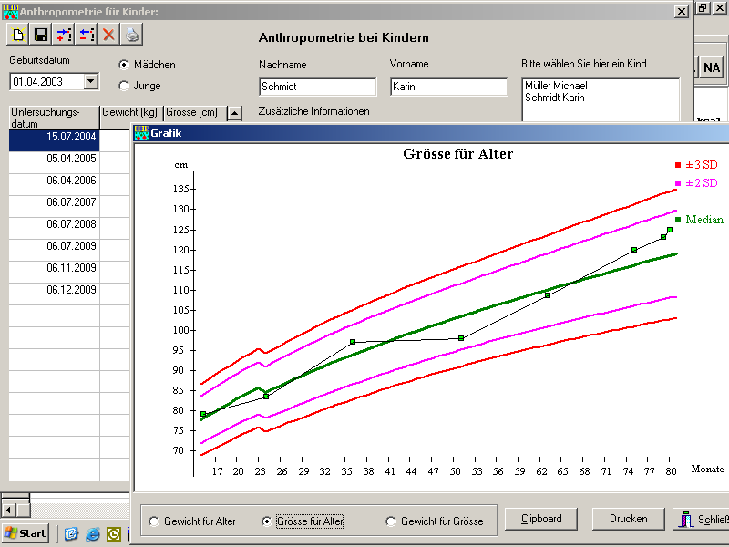 Die Anthropometrie für Kinder ist von der Energiebedarfsrechnung ausgegliedert