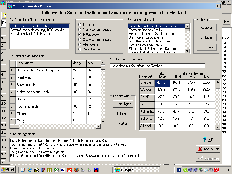 Für die Diätauswahl gibt es eine Funktion mit der Sie diese Diäten sehr einfach modifizieren können.
