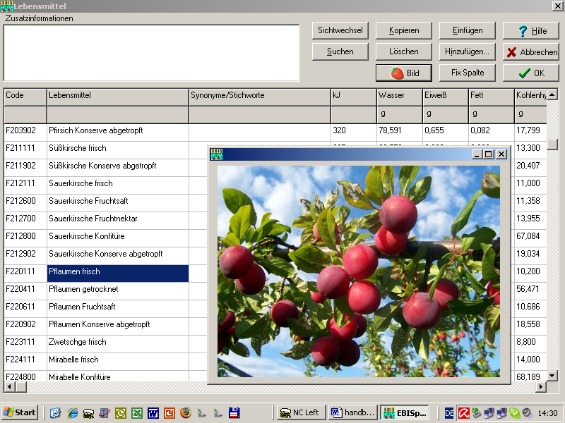 Für die meisten Obst und Gemüsearten sind Bilder integriert die beliebig erweitert werden können.