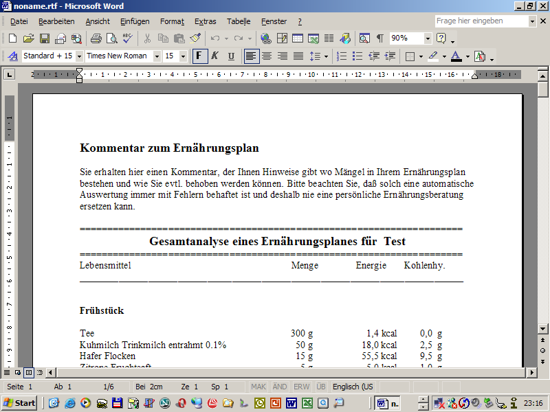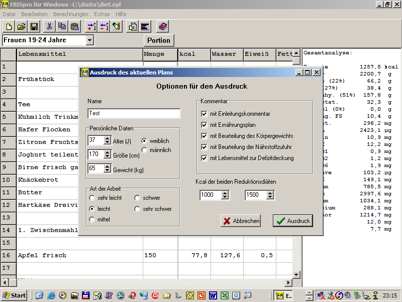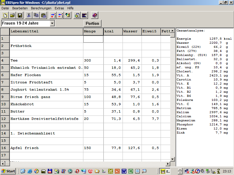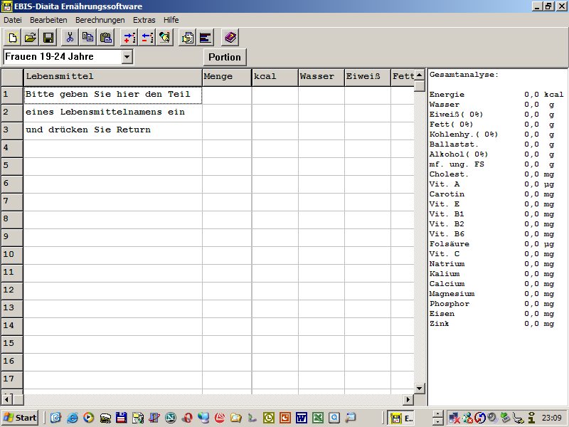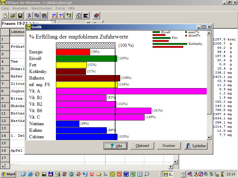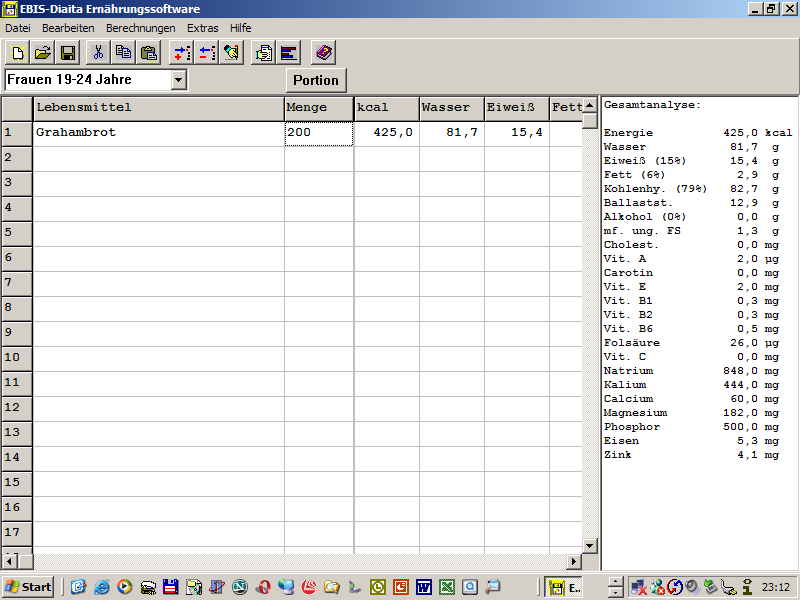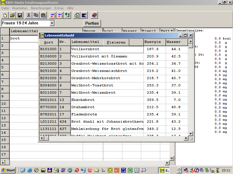 diesen im Programm unter 'Berechnungen/Food Frequencie' abrufen.