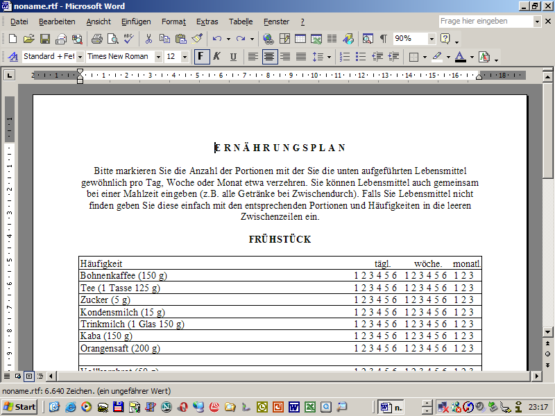 Anschliessend müssen nur noch die Angaben des Food Frequencie